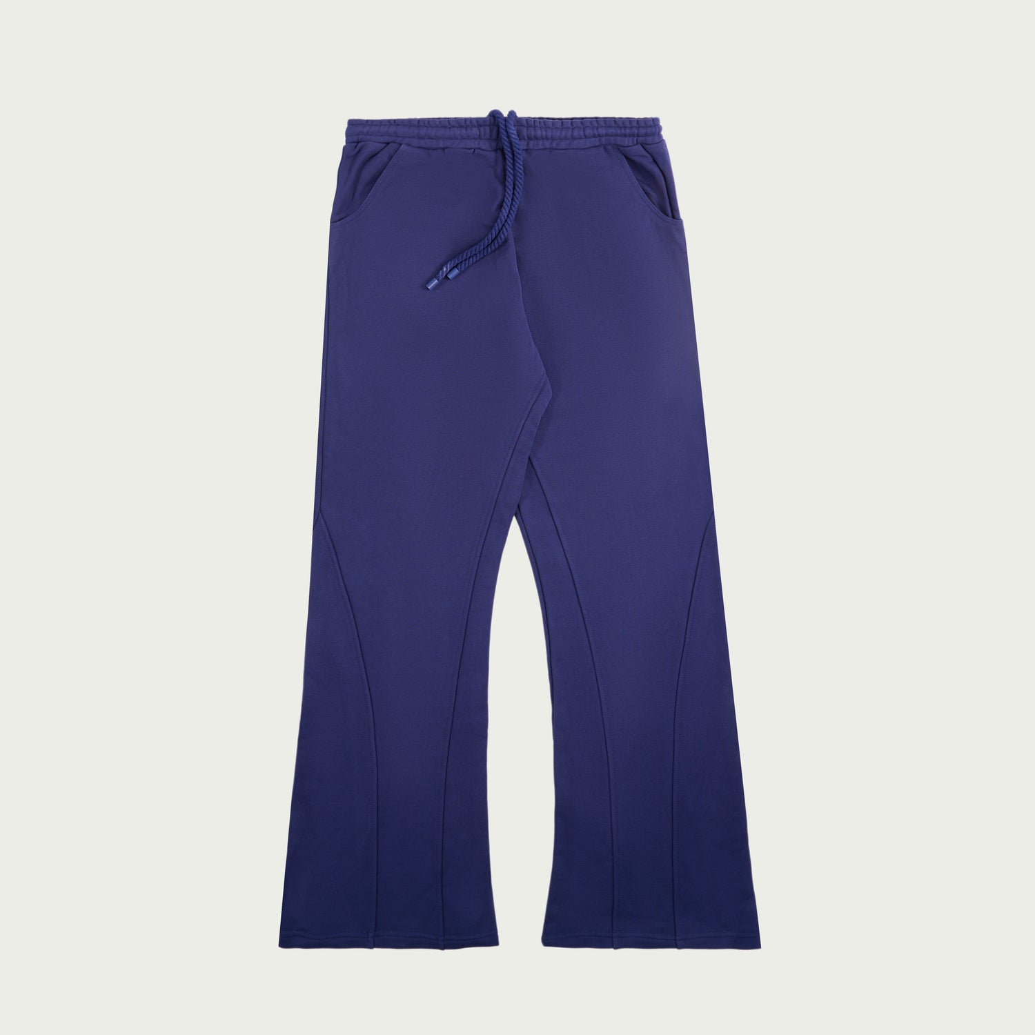 Experience ultimate comfort and style with our Label-Stitch Blue Cotton Flare Sweatpants. These sweatpants are made from 100% organic cotton and feature a j-curve leg and slight flare, giving them a modern and gender neutral design. The unique paneling on the sides adds a touch of uniqueness, while the drawcord with signature blue detailing ensures a snug fit. For a more relaxed look, simply size up.