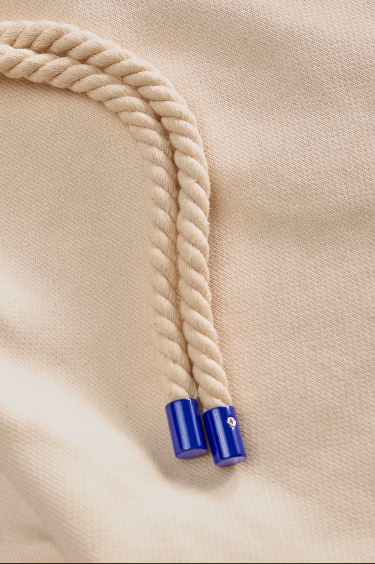 Experience ultimate comfort and style with our Label-Stitch Off-White Cotton Flare Sweatpants. These sweatpants are made from 100% organic cotton and feature a j-curve leg and slight flare, giving them a modern and gender neutral design. The unique paneling on the sides adds a touch of uniqueness, while the drawcord with signature blue detailing ensures a snug fit. For a more relaxed look, simply size up.