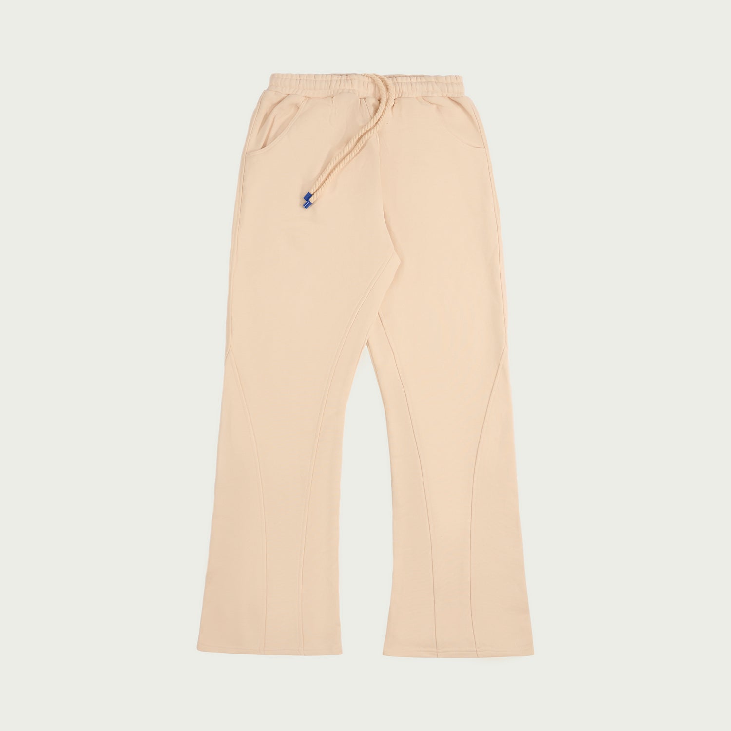 Label-Stitch Off-White Cotton Flare Sweatpants
