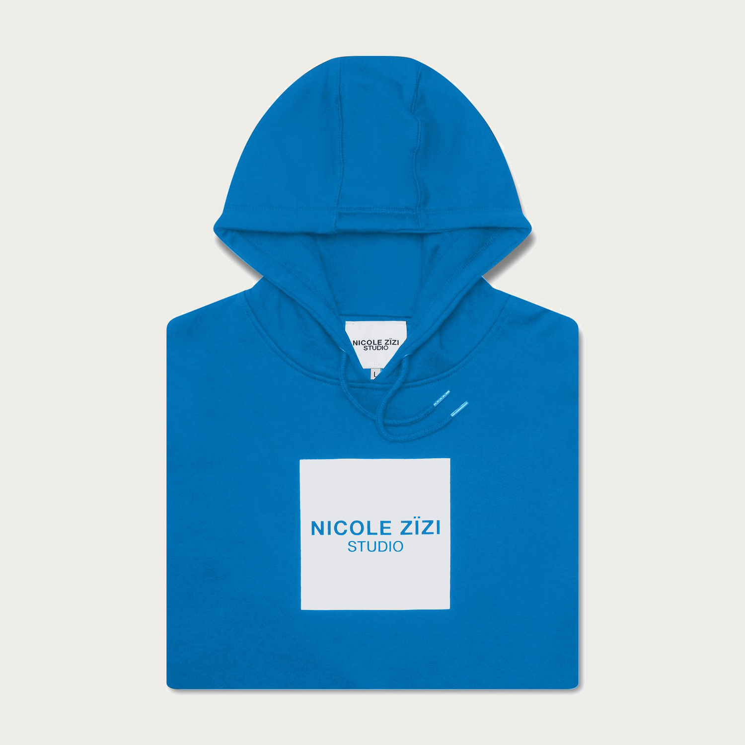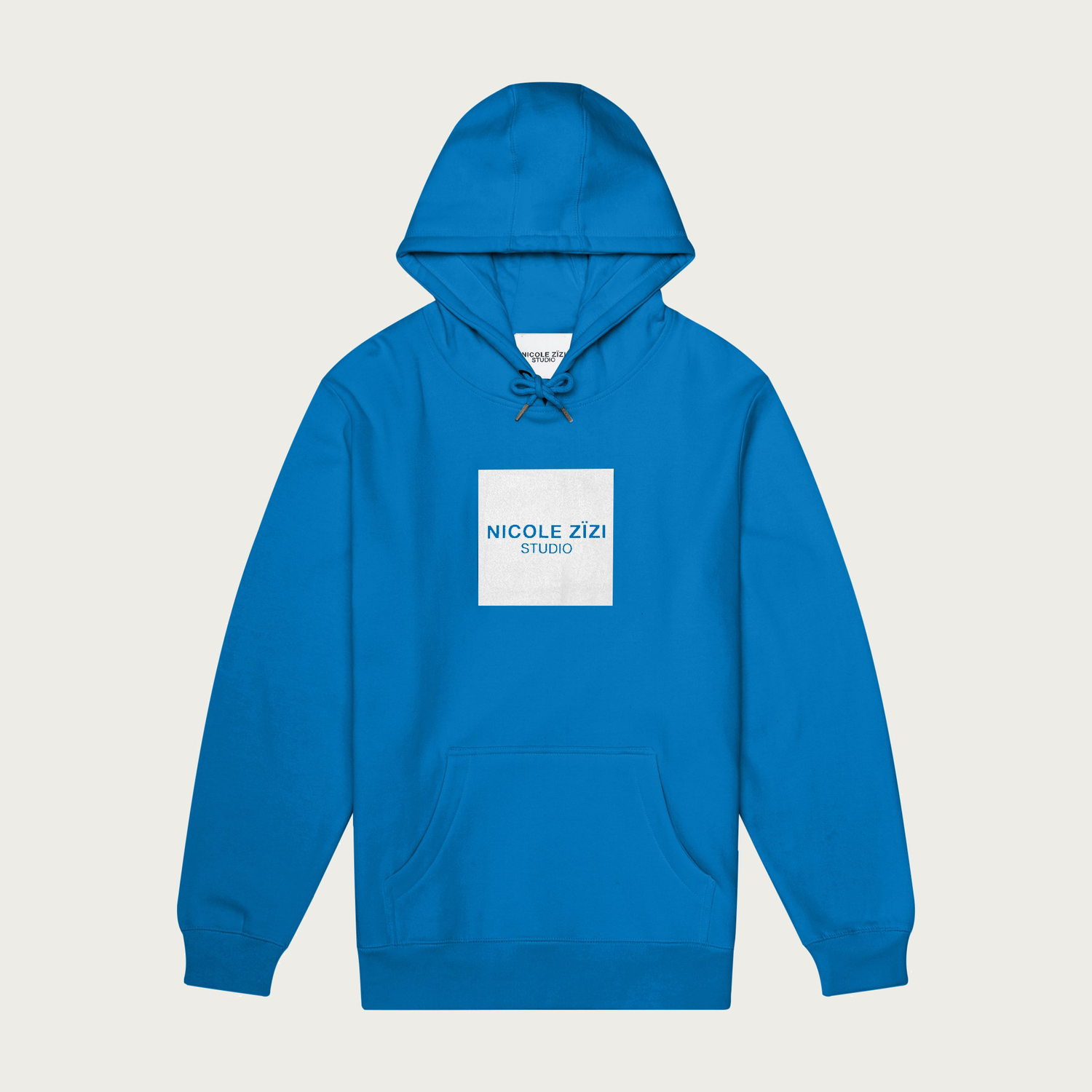Organic Cotton Box Blue Logo Hooded Sweatshirt