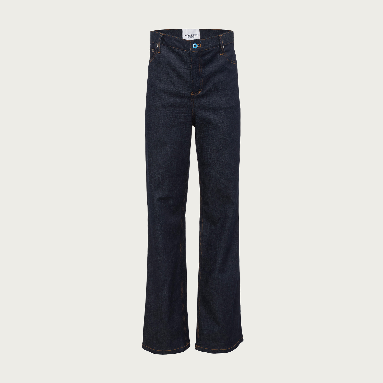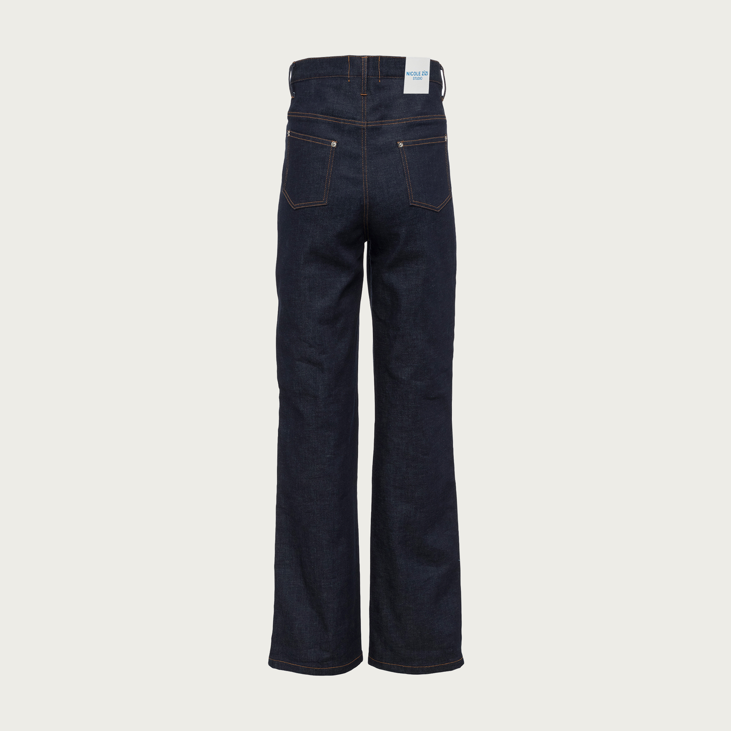 Recycled Stretch Bootcut Denim Pants featuring our raw blue recycled denim. Made from recycled PET (plastic) spun into cotton, and woven in Mexico.